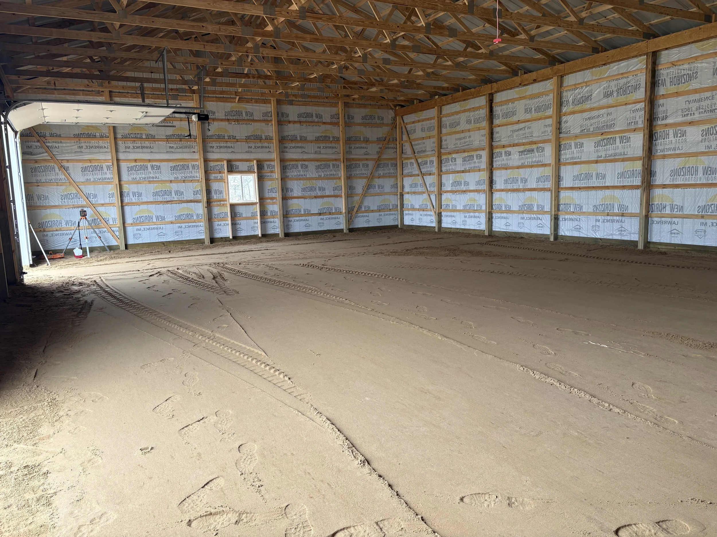 This new Amish-built barn is prepared for durability and functionality. The interior floor and exterior are ready for concrete and the surrounding ground is graded for proper drainage. This job site is a great example of the quality work you can expect from SWMI Posthole.
